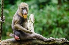 Male mandrills develop brilliantly coloured faces as they produce more testosterone with age, and the high ranking males have the brightest faces of all to let the other mandrills know who’s boss.