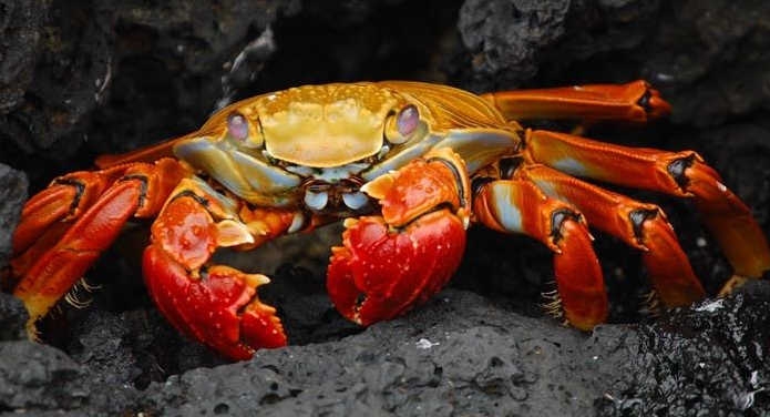 Crabs have big protective plates on their back, which are also very useful for camouflage when surrounded by coral!